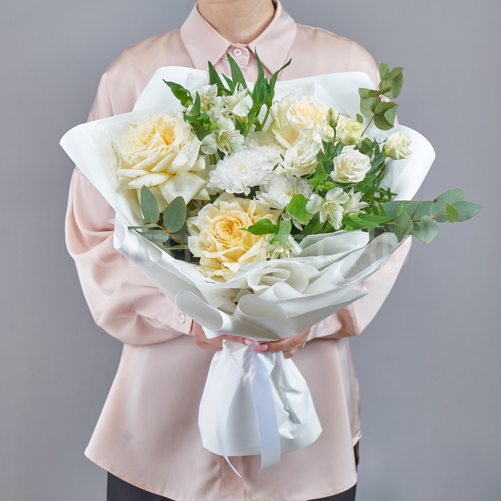 Возможны минимальные отличия букета от фотографии и допустимы отличия по цветовой гамме, так как цветы являются природным материалом и собираются вручную